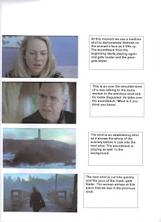 This is my storyboard, where I print screened diffrent types of shots of 'The Ring's' trailer and wrote about why they had these particular shots.